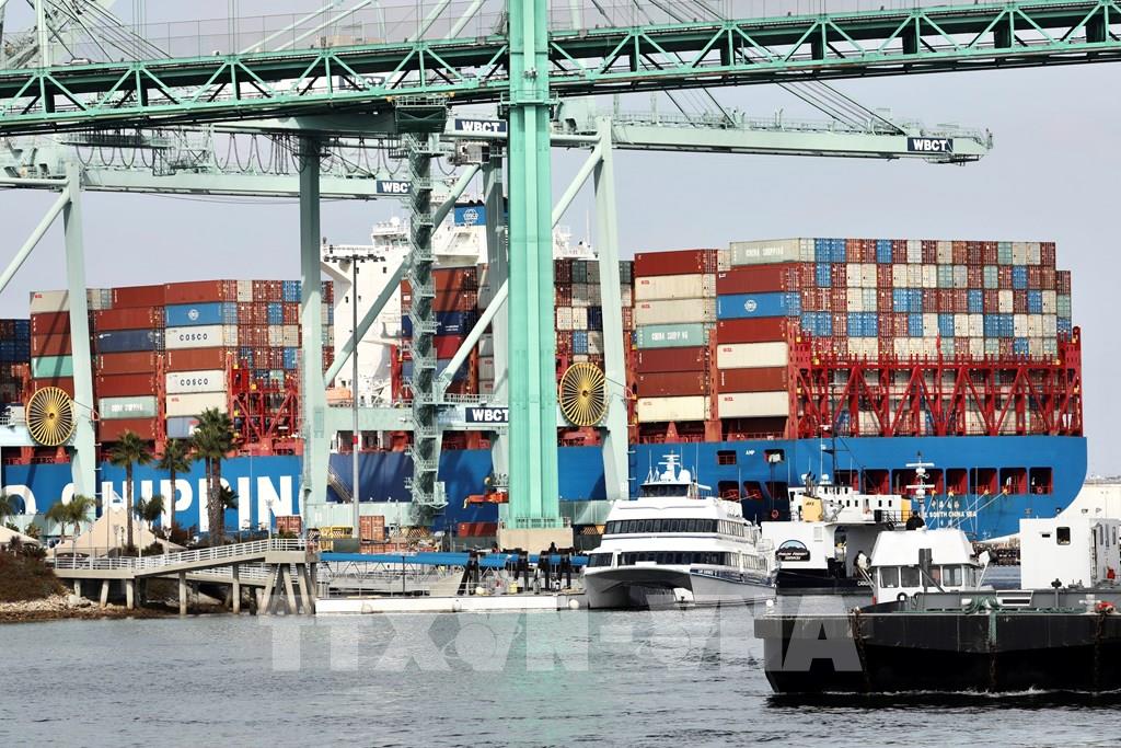 Quang cảnh cảng hàng hóa tại Los Angeles, California, Mỹ. Ảnh: THX/TTXVN