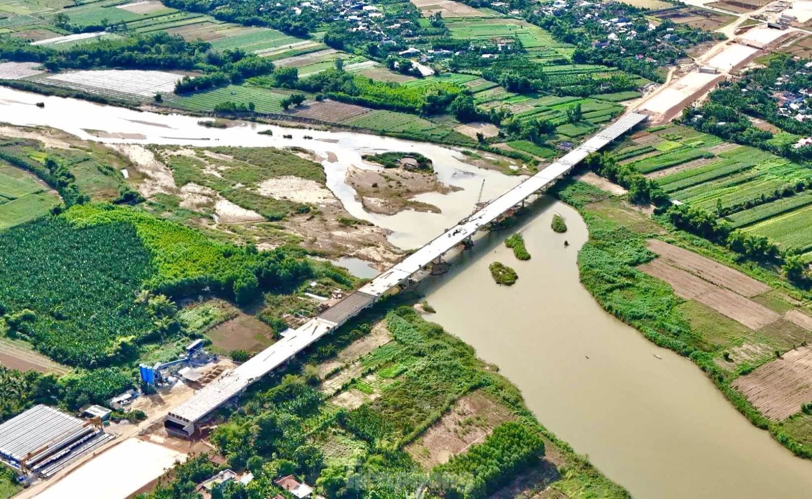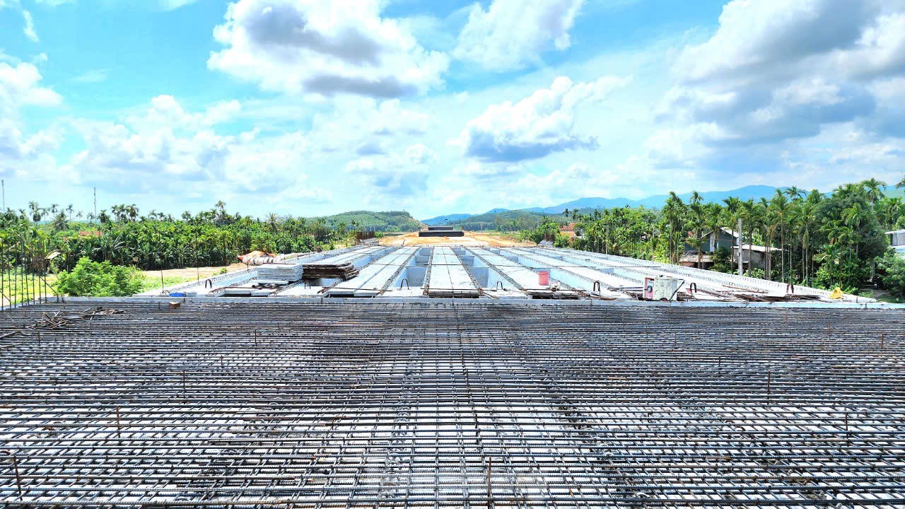 Hiện nhà thầu đã triển khai đổ bê tông bản mặt cầu được 13 nhịp và đang tập trung hoàn thiện 2 nhịp còn lại ở đầu phía nam thuộc địa bàn xã Hành Thịnh.