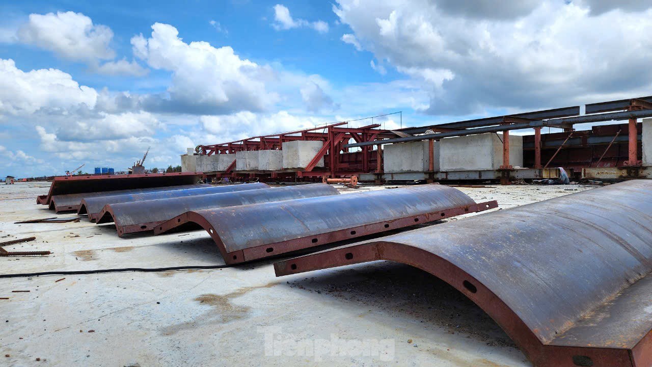 Song song với phần chính của cầu, nhà thầu cũng triển khai đồng loạt thi công mố hai bên đầu cầu, đắp đất nền để thông tuyến phục vụ giao thông đi lại tạm thời trong quá trình di chuyển hai bên đầu cầu trong mùa mưa lũ.