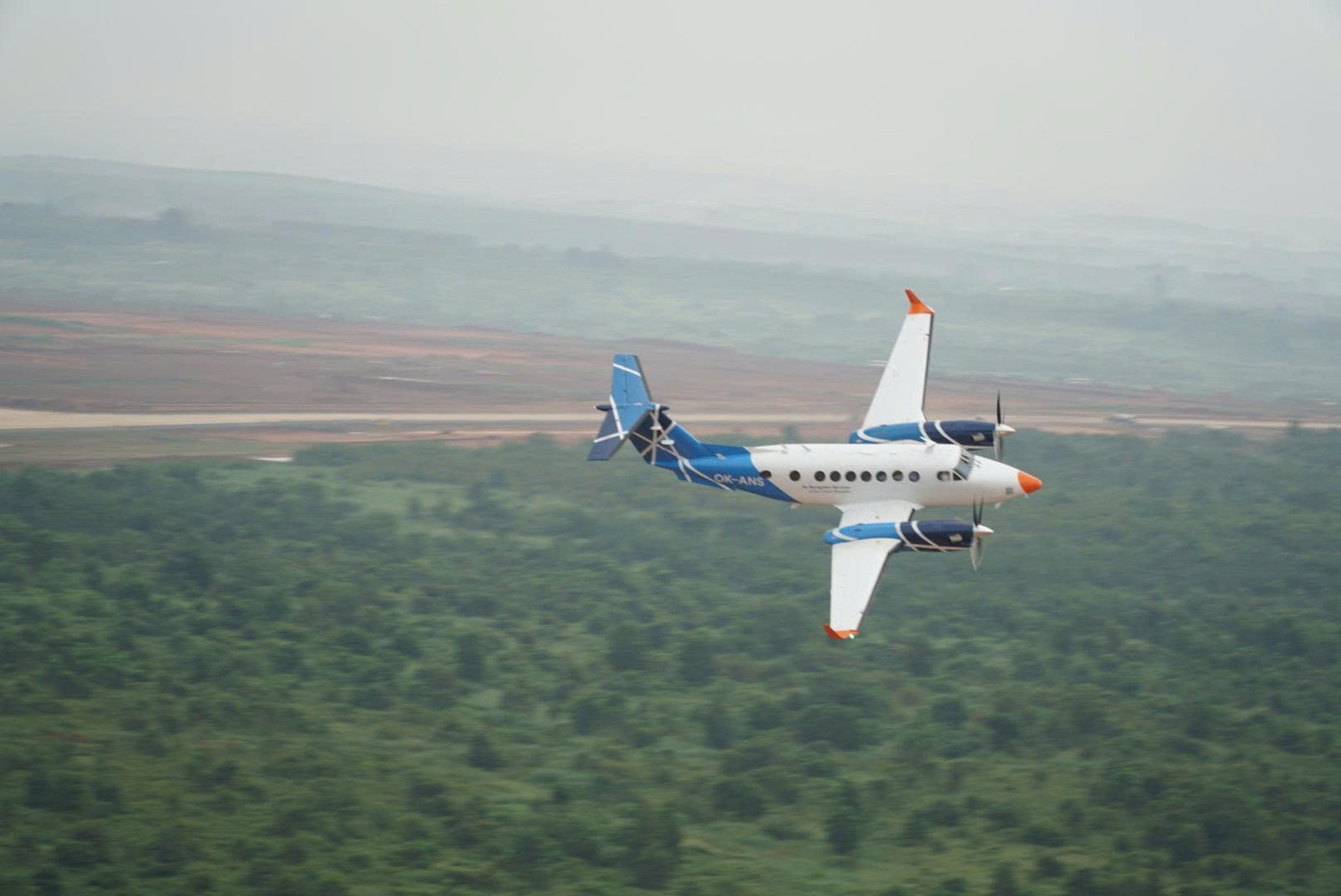 Máy bay Beech King Air 350ER bay hiệu chuẩn tại sân bay Long Thành.