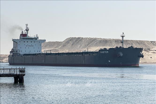 Tàu hàng di chuyển qua Kênh đào Suez ở tỉnh Ismailia, Ai Cập ngày 13/1/2024. Ảnh: THX/TTXVN