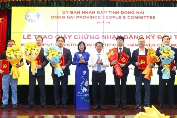 UBND tỉnh Đồng Nai trao Giấy chứng nhận cho 14 dự án vốn đầu tư trực tiếp nước ngoài (FDI) và vốn trong nước.
