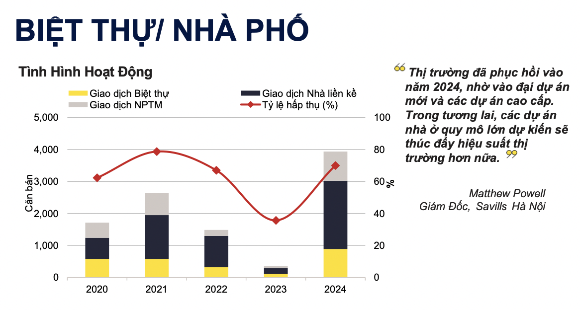 Thêm vào đó, tình hình giao dịch của thị trường bất động sản Hà Nội ở phân khúc căn hộ và biệt thự liền kề đã có sự khởi sắc đáng kể so với 2 năm liền trước, theo Savills.