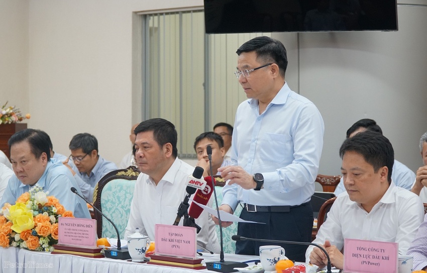Ông Lê Mạnh Hùng – Chủ tịch HĐTV Petrovietnam trình bày tại buổi làm việc ngày 9/5.