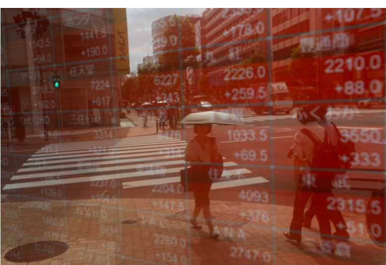 Hình ảnh một người phụ nữ được phản chiếu trên bảng giá chứng khoán điện tử bên ngoài một công ty môi giới ở Tokyo, Nhật Bản, ngày 6 tháng 8 năm 2024. Ảnh REUTERS/Willy Kurniawan