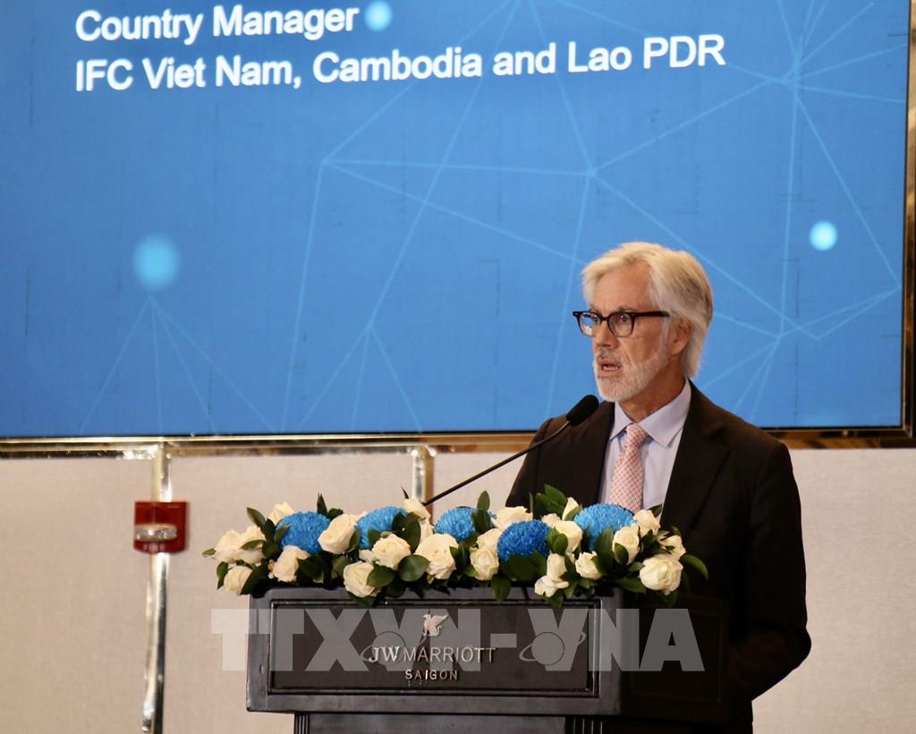 Ông Thomas Jacobs, Giám đốc Quốc gia IFC phụ trách khu vực Mekong (Việt Nam, Campuchia và Lào) nhấn mạnh vai trò của tài chính số trong việc chuyển đổi kinh tế toàn diện. Ảnh: Hứa Chung - TTXVN
