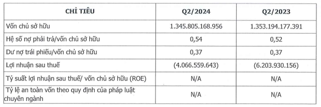 Tại ngày 30/6/2024, vốn chủ sở hữu doanh nghiệp đạt 1.345,8 tỷ đồng, tổng nợ phải trả gần 727 tỷ đồng.
