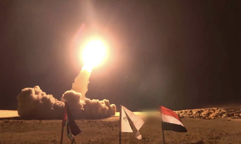 Tên lửa của lực lượng Houthi rời bệ phóng trong vụ tập kích tháng 12/2024. Ảnh: Al Masirah