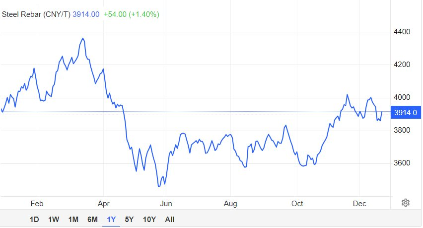 Trên thế giới, giá thép giao tháng 5/2024 trên Sàn giao dịch Thượng Hải tăng 45 nhân dân tệ lên mức 3.914 nhân dân tệ/tấn trong ngày 21/12.
