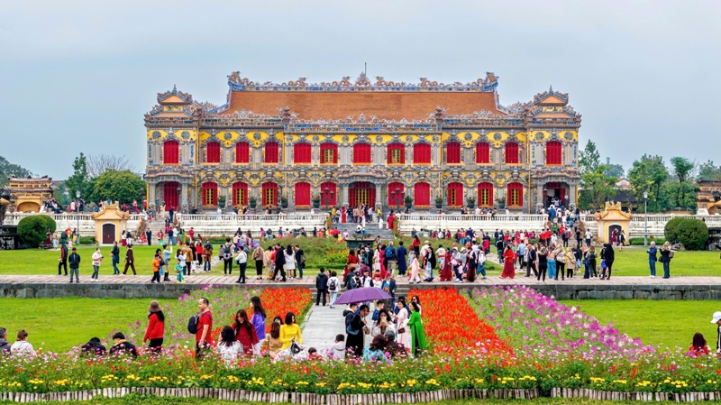 Khách du lịch tham quan di sản Huế