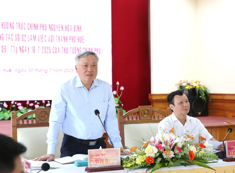Biểu dương, ghi nhận và đánh giá cao những kết quả tích cực mà TP. Huế đạt được thời gian qua, Phó Thủ tướng Thường trực Chính phủ Nguyễn Hòa Bình cho rằng, cùng với nhiệm vụ chuẩn bị và tổ chức đại hội Đảng các cấp, triển khai thực hiện chủ trương của Trung ương về sắp xếp và tổ chức chính quyền địa phương 2 cấp, Huế đã rất nỗ lực trong khai thác các tiềm năng, lợi thế, tháo gỡ các khó khăn, vướng mắc, thúc đẩy phát triển triển kinh tế-xã hội, bảo đảm quốc phòng an ninh, chăm lo đời sống vật chất và tinh thần cho nhân dân.