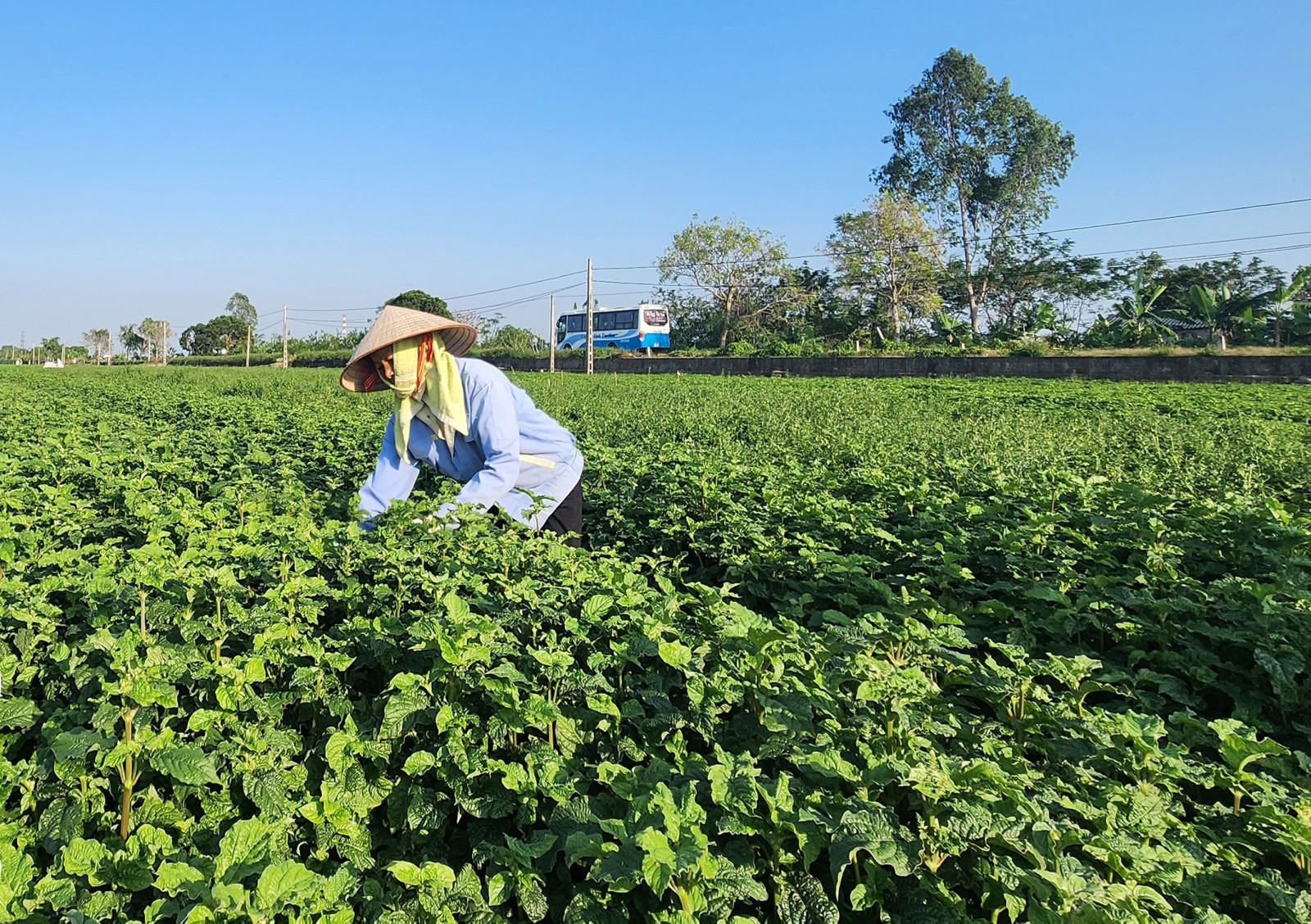Nông dân xã Thống Nhất, huyện Hưng Hà (Thái Bình) chăm sóc cây dược liệu ngưu tất. Ảnh: Báo Thái Bình