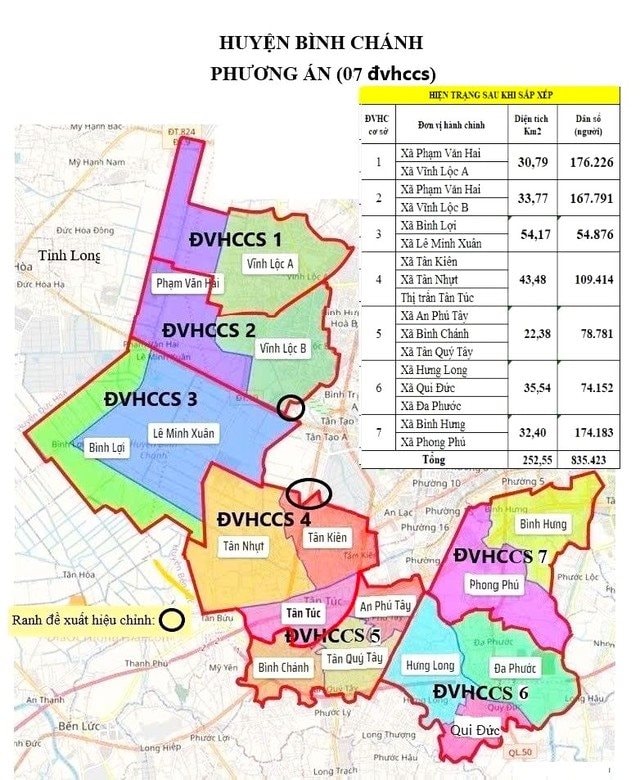 Với diện tích 252 km² và dân số hơn 835.000 người, Bình Chánh hiện là huyện đông dân nhất TP.HCM. Theo phương án mới, huyện sẽ giảm từ 16 xã và thị trấn xuống còn 7 đơn vị hành chính, giảm 56% số xã, mở ra cơ hội tái cấu trúc không gian đô thị và thúc đẩy thị trường bất động sản phát triển mạnh mẽ hơn.
