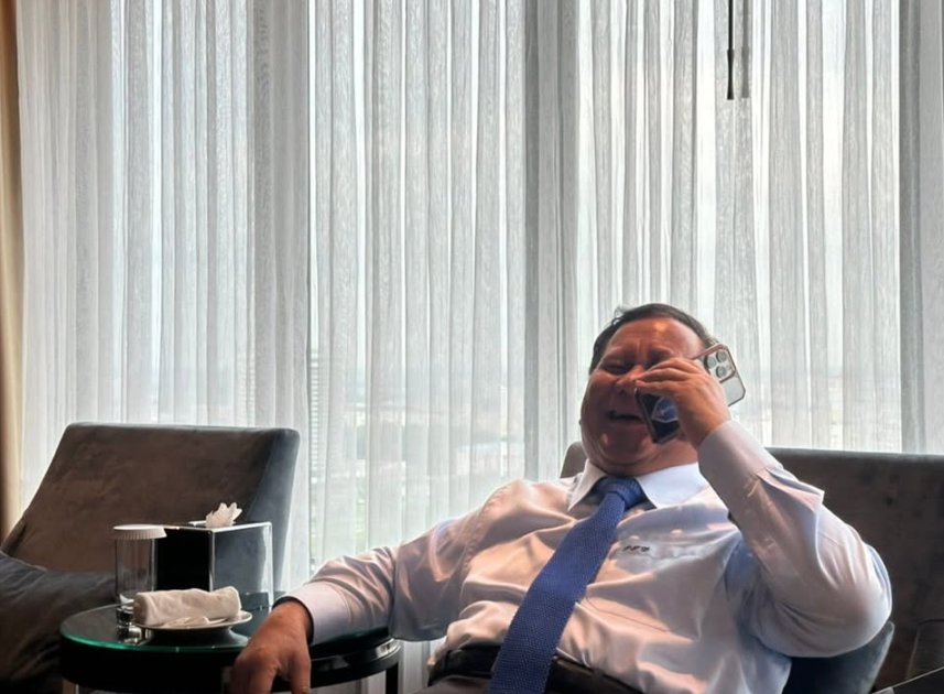 Hình ảnh Tổng thống Subianto cười vui vẻ khi điện đàm với ông Trump - Ảnh: INSTAGRAM/@prabowo