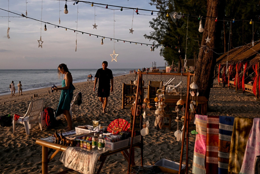 Du khách đi bộ dọc bãi biển ở tỉnh Phang Nga, miền nam Thái Lan - Ảnh: AFP