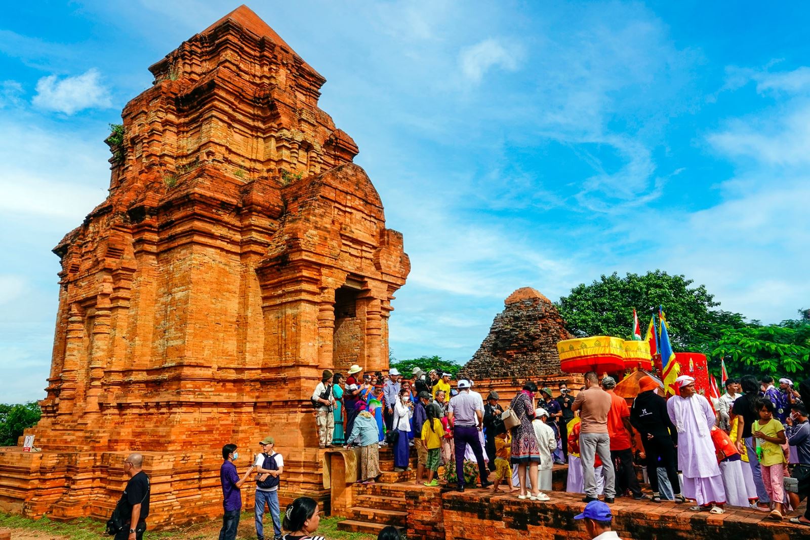 Du khách tham quan tháp Chăm Pô Sah Inư tại phường Phú Thủy (Ảnh: Ngọc Lân)