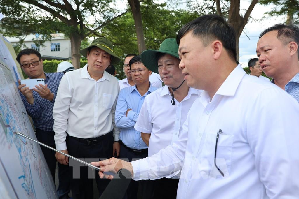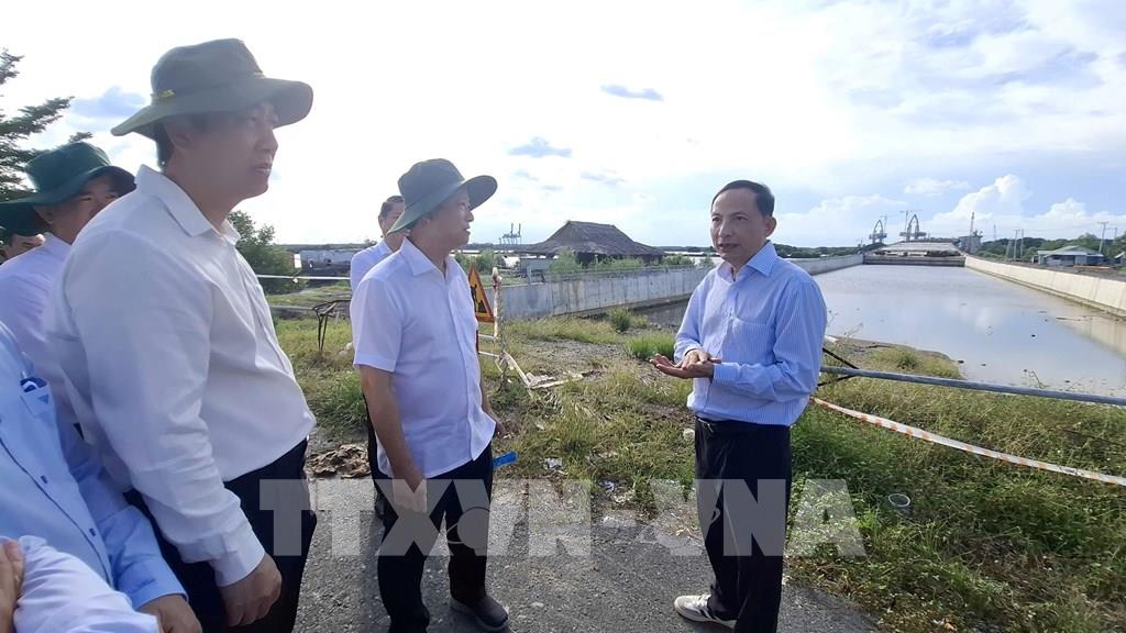Phó Bí thư Thành ủy, Chủ tịch HĐND TP. Hồ Chí Minh Võ Văn Minh khảo sát dự án cầu Phước An. Ảnh: Hoàng Nhị - TTXVN