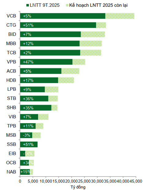 Sự phục hồi của bất động sản đã tạo ra hiệu ứng lan tỏa tích cực đến hệ thống ngân hàng. Khi giá nhà ở và thanh khoản thị trường cải thiện, các ngân hàng không chỉ mở rộng được tín dụng mà còn đẩy mạnh thu hồi nợ xấu. Trong 9 tháng đầu năm 2025, thu nhập từ thu hồi các khoản nợ đã xóa tăng tới 62% so với cùng kỳ, đặc biệt tại nhóm ngân hàng quốc doanh và một số ngân hàng tư nhân nhỏ. Đây là yếu tố quan trọng giúp lợi nhuận ngành ngân hàng duy trì tăng trưởng trong bối cảnh biên lãi thuần bị thu hẹp.