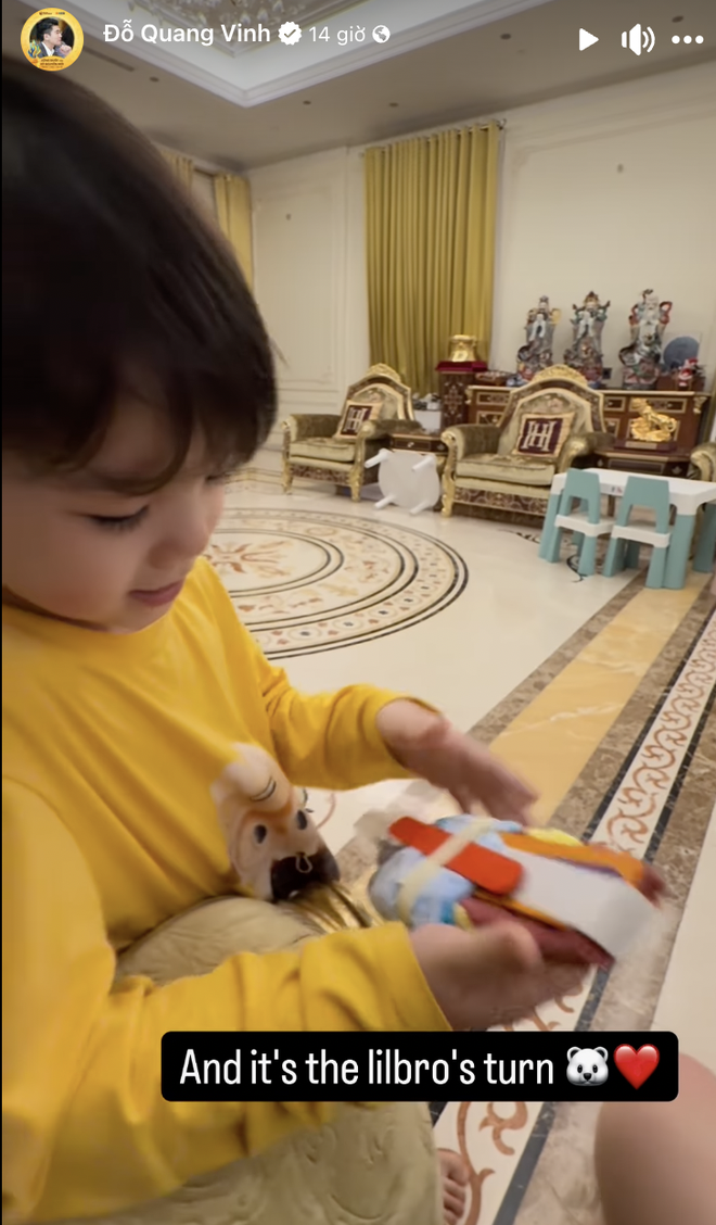 Và trong lúc dạy con, thiếu gia họ Đỗ luôn dùng sự dịu dàng, ân cần, tỉ mỉ chỉnh sửa phát âm cho trẻ đồng thời cũng kiên nhẫn lắng nghe và dành cho con thời gian để tư duy. Anh luôn dùng những lời khen để khích lệ các con, bằng cách khen các bé thông minh, giỏi giang. Cách dạy con này giúp hai nhóc tỳ có thể thoải mái chia sẻ suy nghĩ của mình và có thêm niềm vui khi học tập. "Xả vai" Chủ tịch đạo mạo khi làm việc bên ngoài, ở nhà, Đỗ Quang Vinh là một "bố bỉm" chính hiệu, thích chăm con, dạy con học và luôn thể hiện niềm tự hào khi có hai nhóc tỳ đáng yêu đồng hành trong cuộc sống của mình.