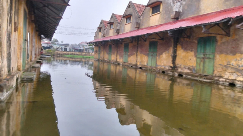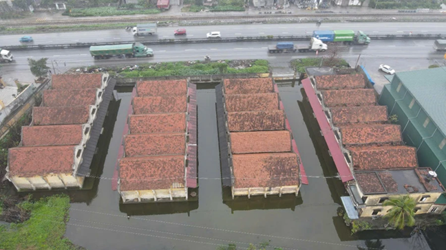 Đặc biệt trong trận bão Yagi diễn ra vào tháng 9 năm ngoái, khu vực nhà kho này bị ngập rất nghiêm trọng, có điểm tới hơn mét nước, cho đến hiện tại, điểm ngập nông nhất khoảng 20cm, có một số vị trí ngập sâu gần 1 mét, có cả cá và nhiều động vật thủy sinh khác sinh sôi phát triển.