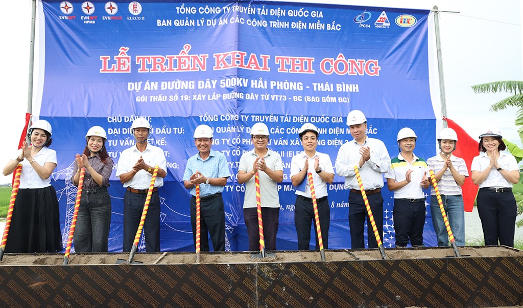 Ngày 17/8, tại Hưng Yên, Tổng công ty Truyền tải điện Quốc gia (EVNNPT), Ban Quản lý dự án các công trình điện miền Bắc (NPMB) phối hợp với chính quyền địa phương, các đơn vị liên quan tổ chức khởi công Dự án đường dây 500kV Hải Phòng – Thái Bình.