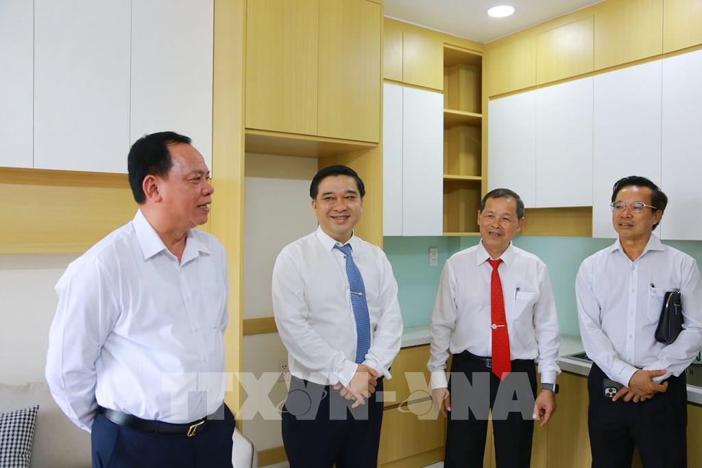 Lãnh đạo tỉnh Đồng Nai thăm công trình nhà ở xã hội đã xây dựng hoàn chỉnh và bàn giao cho người lao động. Ảnh: Lê Xuân-TTXVN