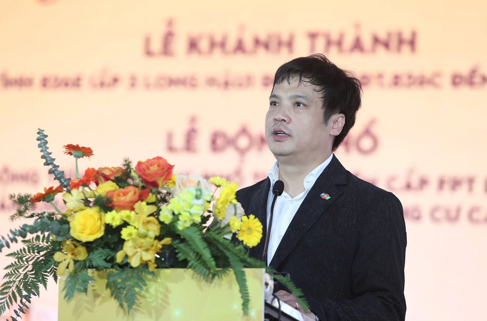 Anh Nguyễn Văn Khoa - Tổng Giám đốc FPT phát biểu tại Lễ động thổ Tiểu học, THCS và THPT FPT tại khu đô thị Thái Sơn Long Hậu, huyện Cần Giuộc, tỉnh Long An.
