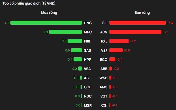 Ngược chiều, OIL bị khối ngoại bán ròng 3 tỷ đồng. Ngoài ra khối ngoại cũng bán ròng tại ACV, PXL,...