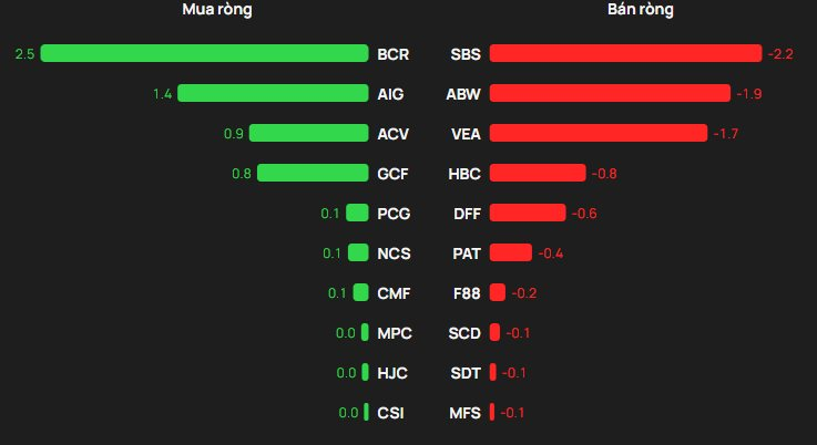Chiều mua, cổ phiếu BCR được khối ngoại mua 2,5 tỷ đồng. Theo sau, AIG và ACV cũng được mua ròng mỗi mã vài tỷ đồng.