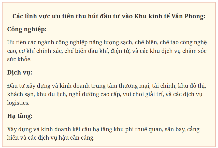 Khu kinh tế Vân Phong, tỉnh Khánh Hòa đang tích cực thu hút đầu tư với nhiều dự án lớn, đặc biệt trong các lĩnh vực công nghiệp, dịch vụ và đô thị.