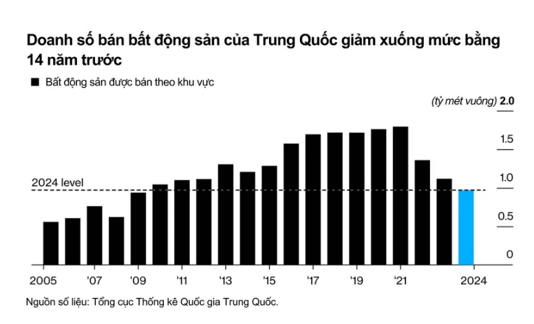 Sự phục hồi tạm thời của doanh số bán nhà sau gói kích thích tháng 9 năm ngoái nhanh chóng suy giảm. Dữ liệu sơ bộ từ China Real Estate Information Corp. cho thấy doanh số nhà ở tháng 1 đã giảm 3,2% so với cùng kỳ năm trước, sau khi gần như không thay đổi trong tháng 12/2024.