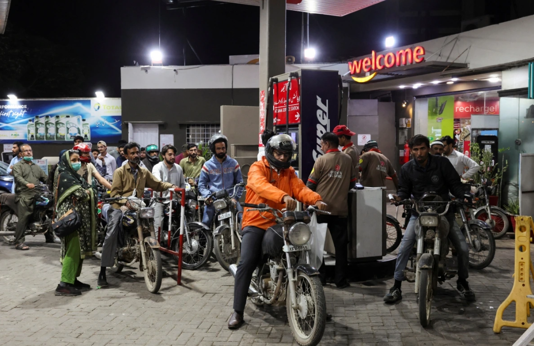 Người dân Pakistan xếp hàng mua xăng, dầu (Ảnh: Reuters)