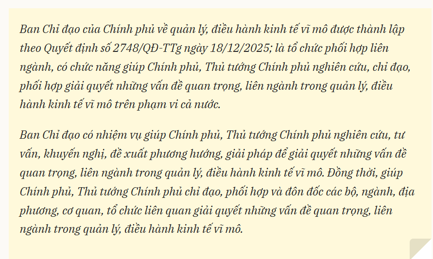 Thủ tướng Phạm Minh Chính, Trưởng Ban Chỉ đạo của Chính phủ về quản lý, điều hành kinh tế vĩ mô nhấn mạnh khi chủ trì Phiên họp lần thứ nhất của Ban Chỉ đạo, chiều 29/12/2025.