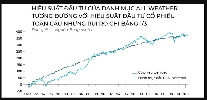 Dữ liệu lịch sử cũng cho thấy, danh mục đầu tư All Weather hoạt động khá tốt ngay cả trong giai đoạn biến động. Theo dữ liệu từ năm 1970-2012, hiệu suất đầu tư của danh mục này tương đương với hiệu suất đầu tư cổ phiếu toàn cầu nhưng rủi ro chỉ bằng 1/3.