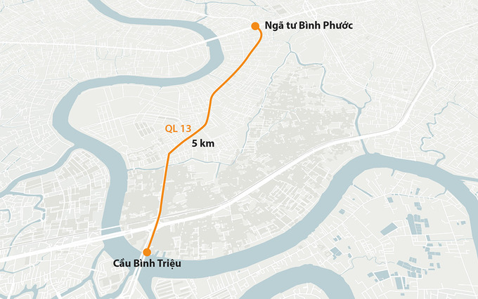 Quốc lộ 13 có chiều dài hơn 140 km, kết nối Tp.HCM với Bình Dương và Bình Phước. Đây là tuyến đường huyết mạch tại cửa ngõ phía đông Tp.HCM, chạy qua khu vực đông dân cư và nối với bến xe Miền Đông cũ cũng như các khu vực nội đô, nên thường xuyên xảy ra ùn tắc. Trước đây, đoạn từ cầu Bình Triệu đến ngã tư Bình Phước từng là một phần của dự án cầu, đường Bình Triệu 2, được hình thành hơn 20 năm trước nhưng vẫn chưa được triển khai.