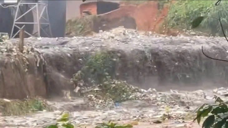 Một lượng lớn nước và rác thải tràn ra ngoài.