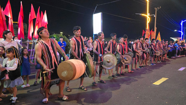 Phố đêm kết hợp với văn hóa cồng chiêng tạo điểm đến hấp dẫn, nhiều màu sắc văn hóa. Ảnh: Bá Bính