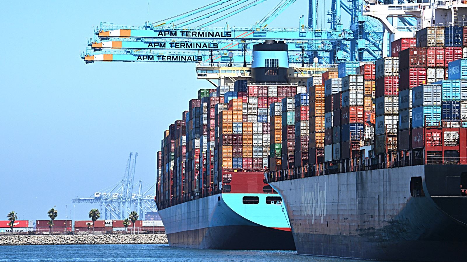 Tàu container neo đậu tại cảng APM ở California vào hôm 31-7 - Ảnh: AFP
