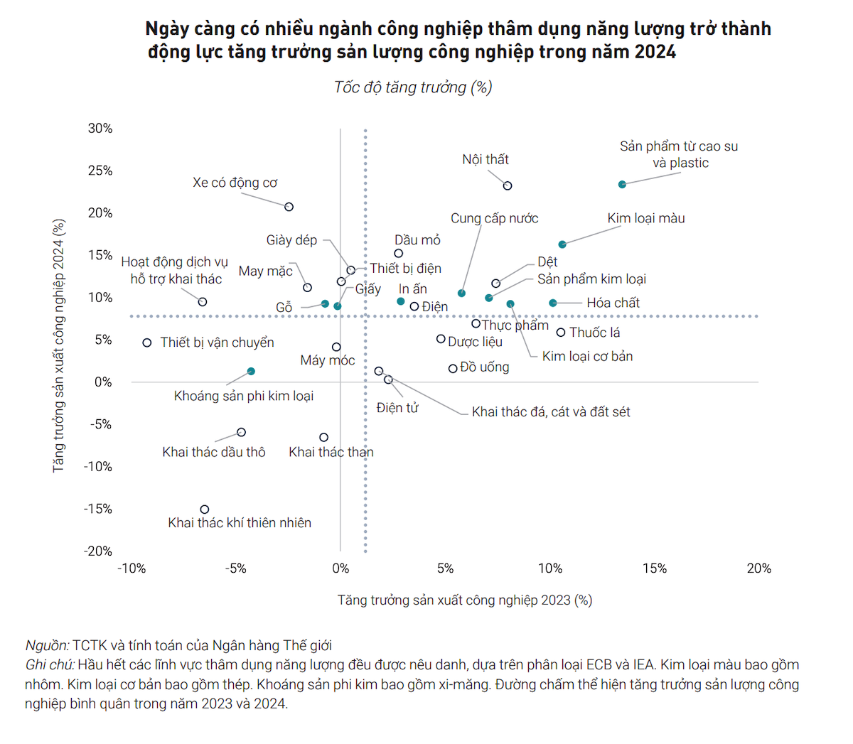 Các ngành, lĩnh vực thâm dụng năng lượng bao gồm thép, nhôm, cao su và nhựa - là những ngành, lĩnh vực đóng góp nhiều cho sản lượng công nghiệp, đồng thời có lẽ là nguyên nhân làm giảm hiệu suất sử dụng điện trong năm 2024.