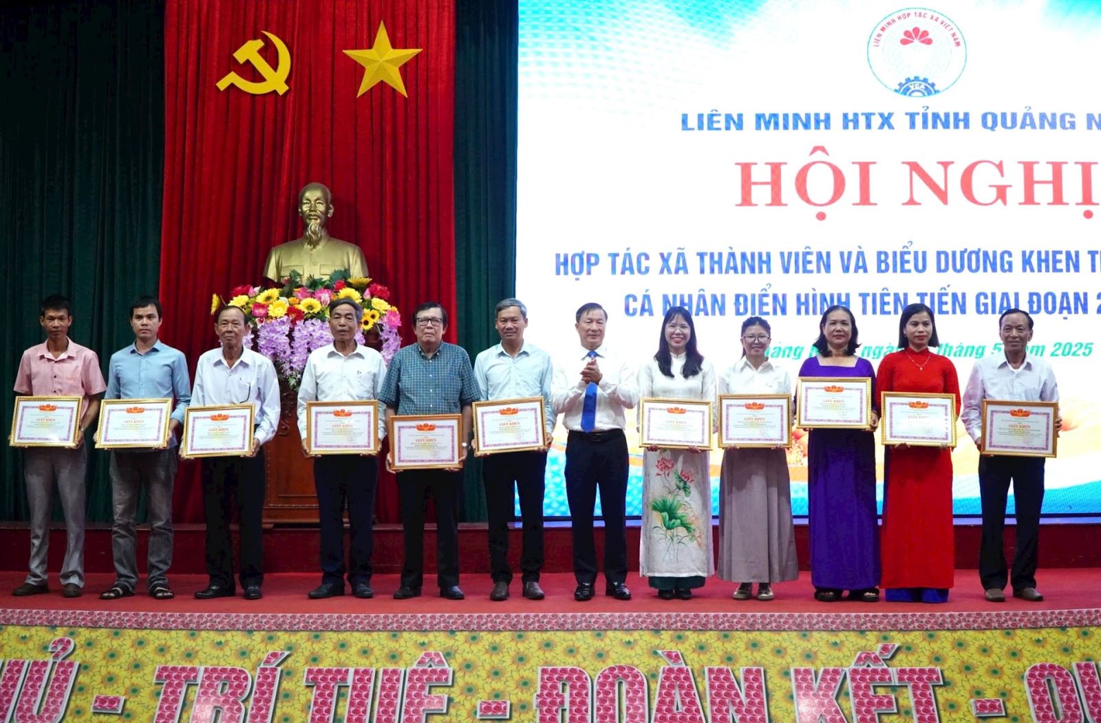 Nhiều tập thể, cá nhân có thành tích xuất sắc, góp phần phát triển kinh tế tập thể giai đoạn 2020 - 2025 vừa được Liên minh HTX tỉnh tuyên dương, khen thưởng. Ảnh: TÂM ĐAN