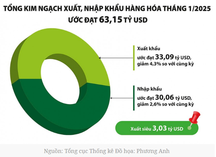 Hệ thống ngân hàng hoạt động an toàn, ổn định, thông suốt, phục vụ tốt nhu cầu trong dịp Tết. Thu ngân sách nhà nước tháng 1 đạt 14% dự toán, tăng 3,5% so với cùng kỳ. Theo số liệu của Tổng cục Thống kê, tổng kim ngạch xuất, nhập khẩu tháng 1 ước đạt 63,15 tỷ USD, xuất siêu 3,03 tỷ USD. Tổng vốn đầu tư nước ngoài đăng ký vào Việt Nam hơn 4,3 tỷ USD, tăng 48,6% so với cùng kỳ; vốn thực hiện trên 1,5 tỷ USD, tăng 2%. Các cân đối lớn, an ninh năng lượng, an ninh lương thực được bảo đảm; bội chi, nợ công, nợ Chính phủ, nợ nước ngoài quốc gia được kiểm soát tốt, thấp hơn giới hạn cho phép.