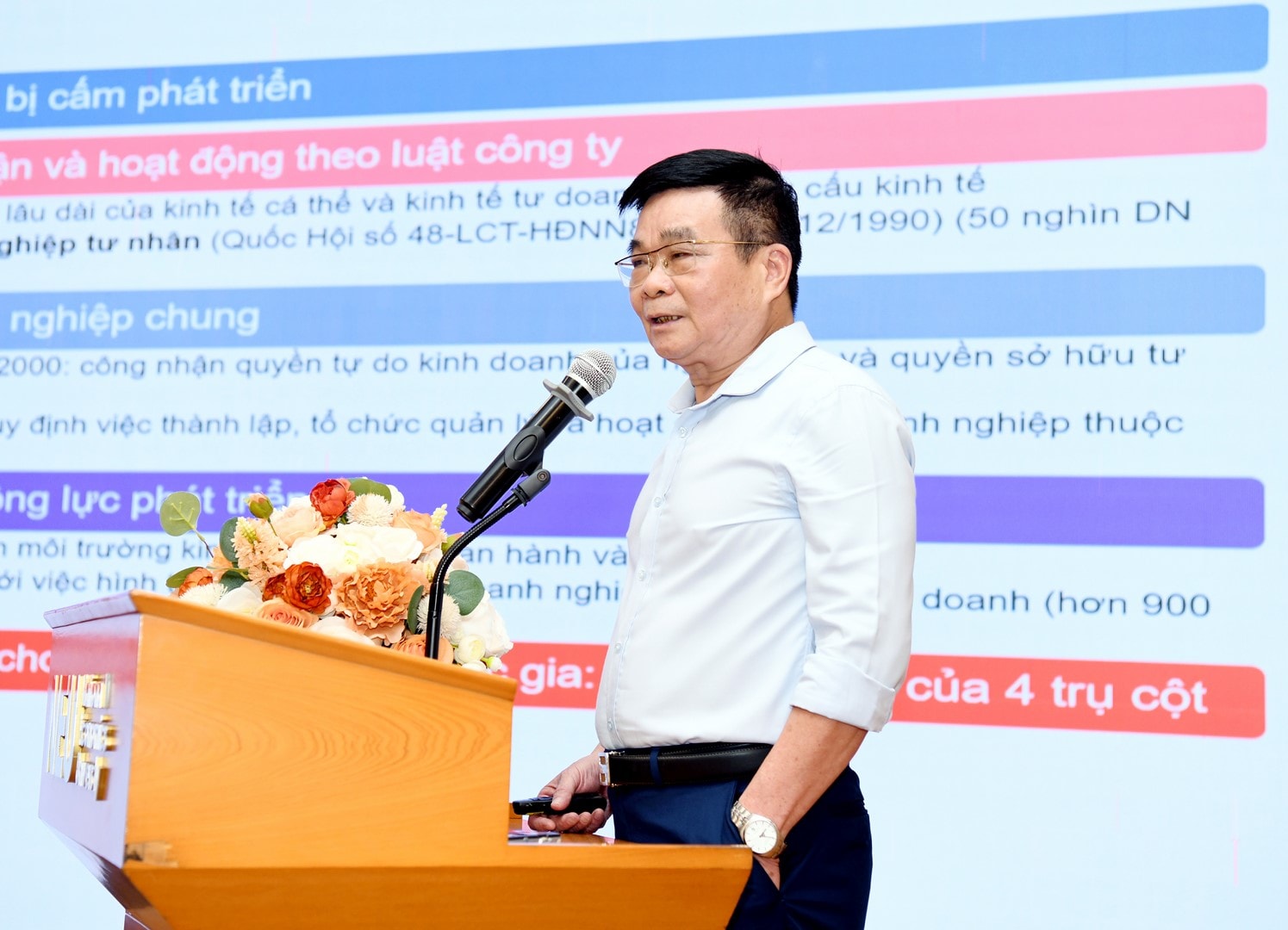 Muốn vậy, cần tháo gỡ triệt để những nút thắt tồn tại lâu nay. Ông nhấn mạnh cần hoàn thiện tư duy và xác định rõ kinh tế tư nhân là động lực quan trọng nhất trong hệ thống kinh tế quốc gia; đề xuất mô hình và chính sách phát triển bao trùm để các loại hình doanh nghiệp – tư nhân, Nhà nước và FDI có cơ hội ngang nhau trong tiếp cận đầu vào, hoạt động kinh doanh và phân phối kết quả đầu ra. Đồng thời, phải tăng cường liên kết giữa các doanh nghiệp tư nhân quy mô khác nhau, gắn kết với cộng đồng doanh nhân Việt ở nước ngoài, kết nối với địa phương nơi doanh nghiệp hoạt động nhằm nâng cao năng lực doanh nhân Việt.