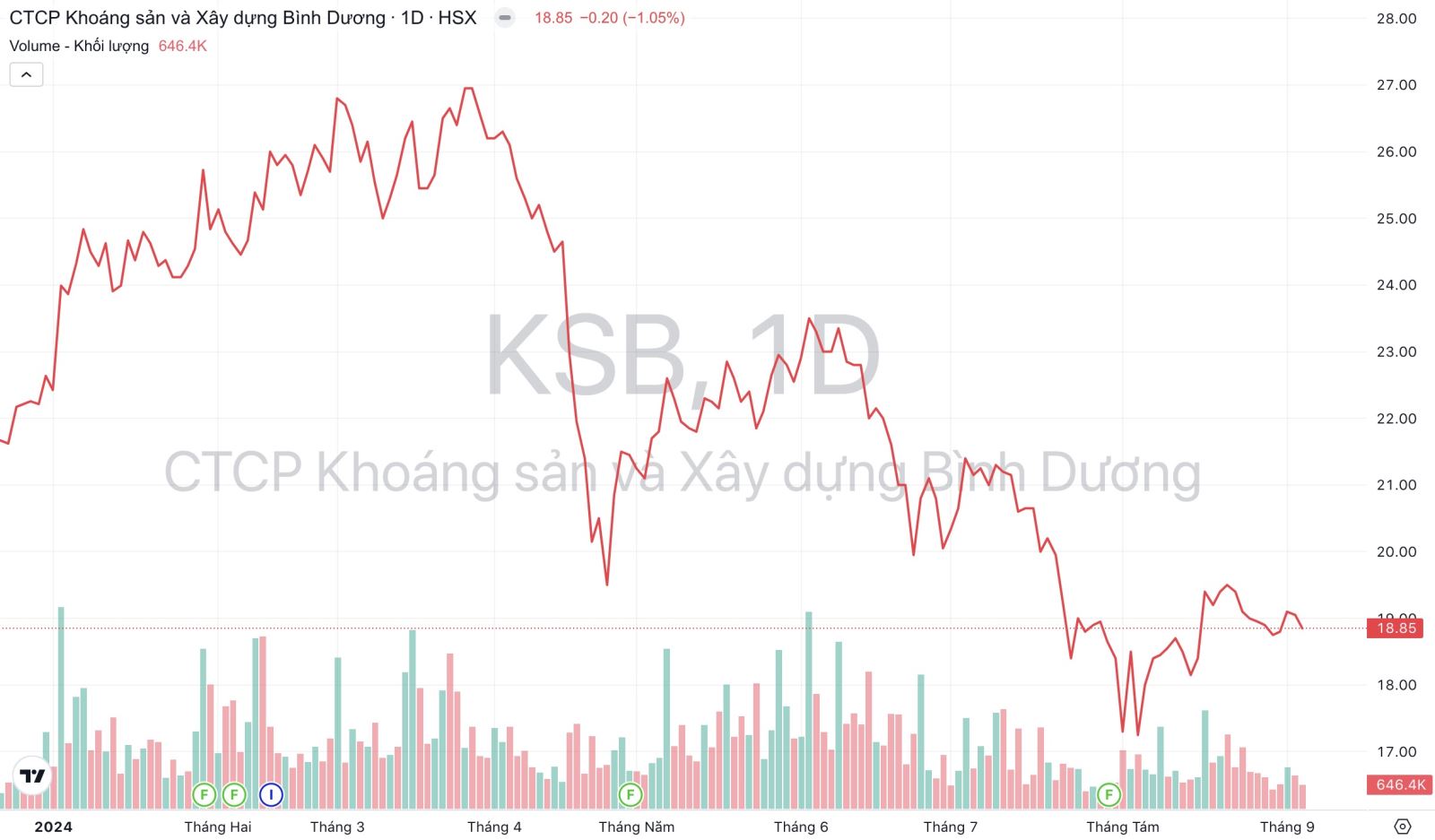 Kết thúc nửa đầu năm nay, Công ty Cổ phần Khoáng sản và Xây dựng Bình Dương (Khoáng sản Bình Dương, mã cổ phiếu KSB - sàn HoSE) ghi nhận kết quả kinh doanh tương đối ảm đạm. Trong đó, doanh thu đạt 193 tỷ đồng và lãi ròng đạt 21 tỷ đồng, lần lượt giảm 29% và 64% so với cùng kỳ năm ngoái, và lần lượt chỉ hoàn thành 25,7% và 30,2% kế hoạch cả năm.