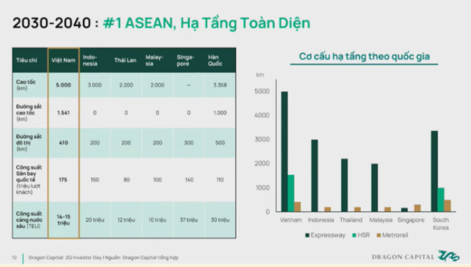 Theo dự báo của Dragon Capital, tầm nhìn 2030 - 2040, Việt Nam sẽ có một cơ cấu hạ tầng toàn diện đứng đầu khu vực.
