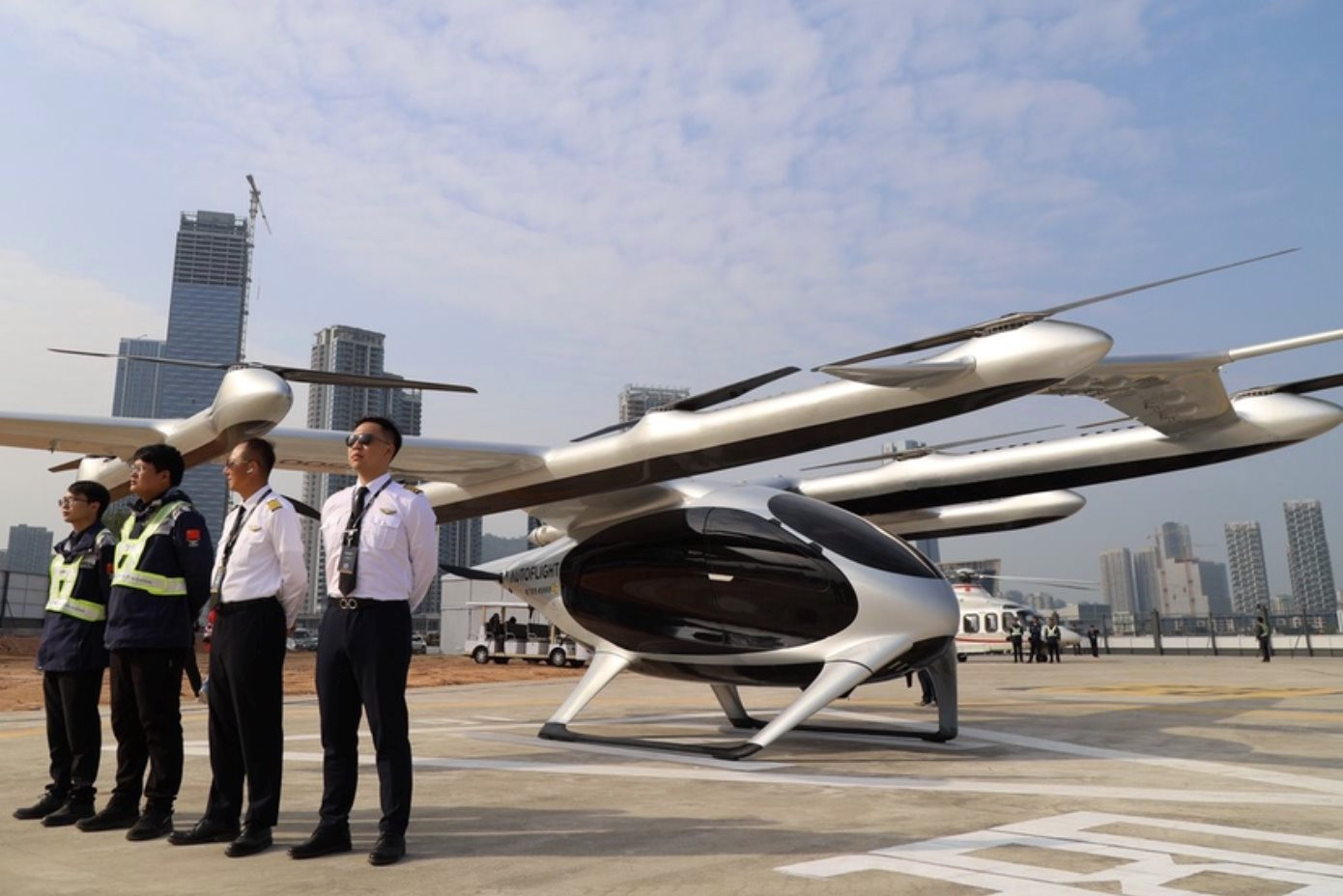 Hồi tháng 3 năm ngoái, Trung Quốc thử nghiệm thành công chuyến bay liên thành phố đầu tiên trên thế giới với eVTOL - máy bay cất cánh và hạ cánh thẳng đứng bằng điện của AutoFlight - công ty công nghệ cao của Trung Quốc có trụ sở tại Thượng Hải. Chiếc máy bay đã cất cánh lên bầu trời mà không có người lái, khởi hành từ một khu cảng ở thành phố Thâm Quyến và đáp tại cảng Cửu Châu, thành phố Chu Hải, đều thuộc miền Nam Trung Quốc.