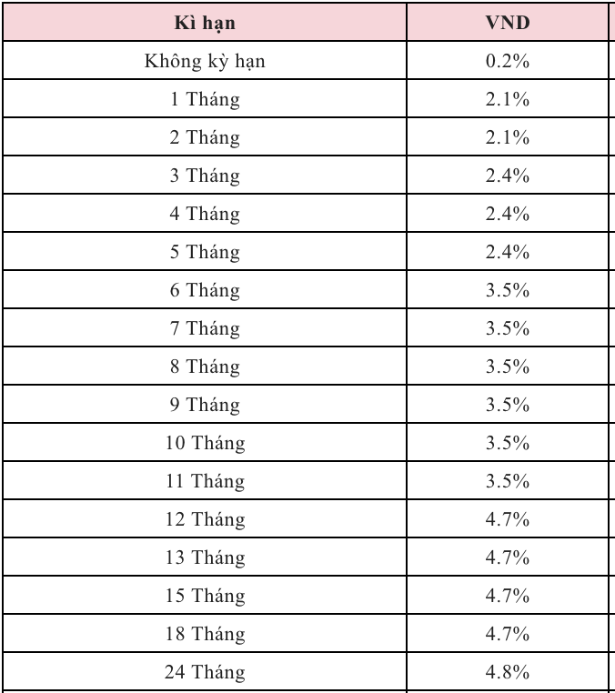 Lãi suất tiền gửi các kỳ hạn 24 - 36 tháng ở mức 4,8%/năm.