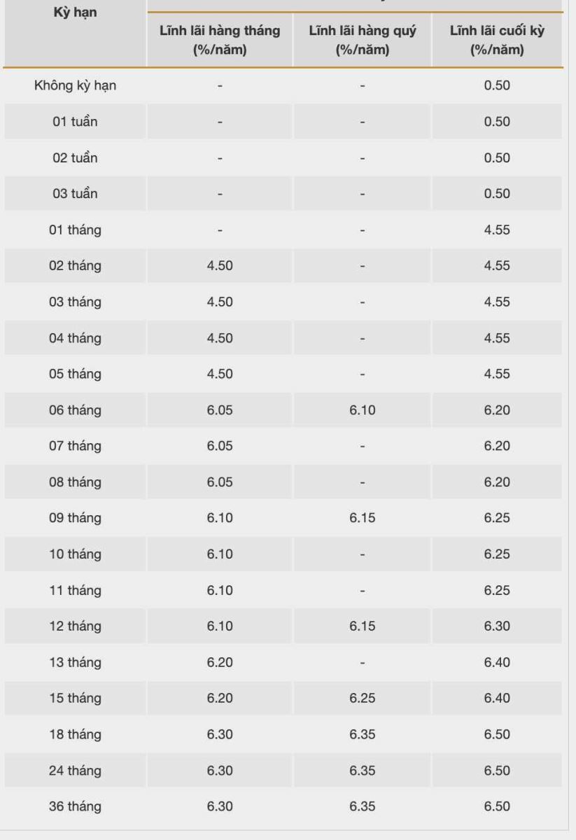 Thông tin về lãi suất chỉ mang tính chất tham khảo và có thể thay đổi trong từng thời kỳ. Vui lòng liên hệ điểm giao dịch ngân hàng gần nhất hoặc hotline để được tư vấn cụ thể.
