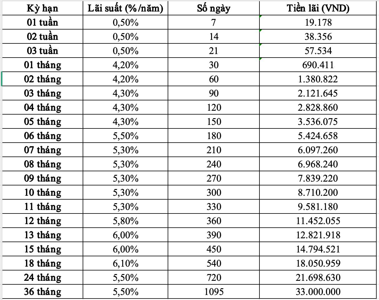Thông tin về lãi suất chỉ mang tính chất tham khảo và có thể thay đổi trong từng thời kỳ. Vui lòng liên hệ điểm giao dịch ngân hàng gần nhất hoặc hotline để được tư vấn cụ thể.