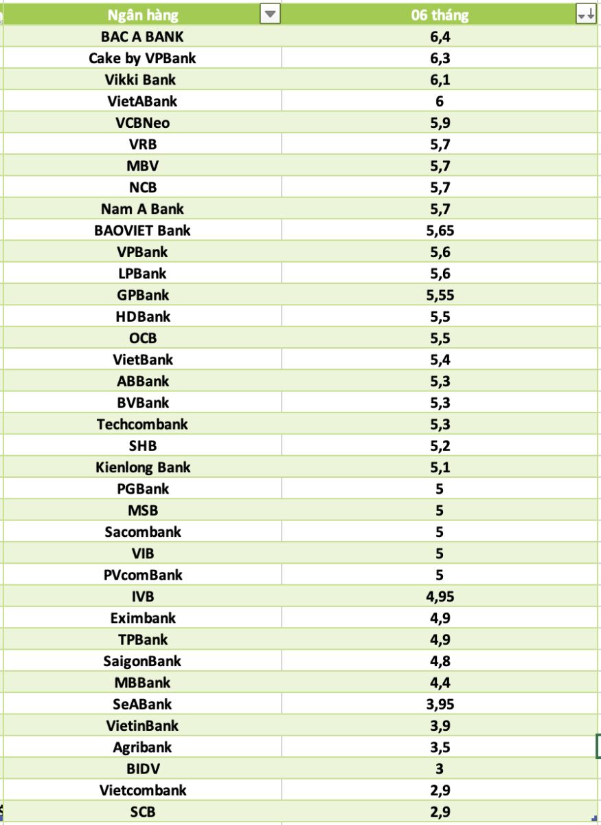 Lãi suất gửi tiết kiệm tại các ngân hàng kỳ hạn 6 tháng