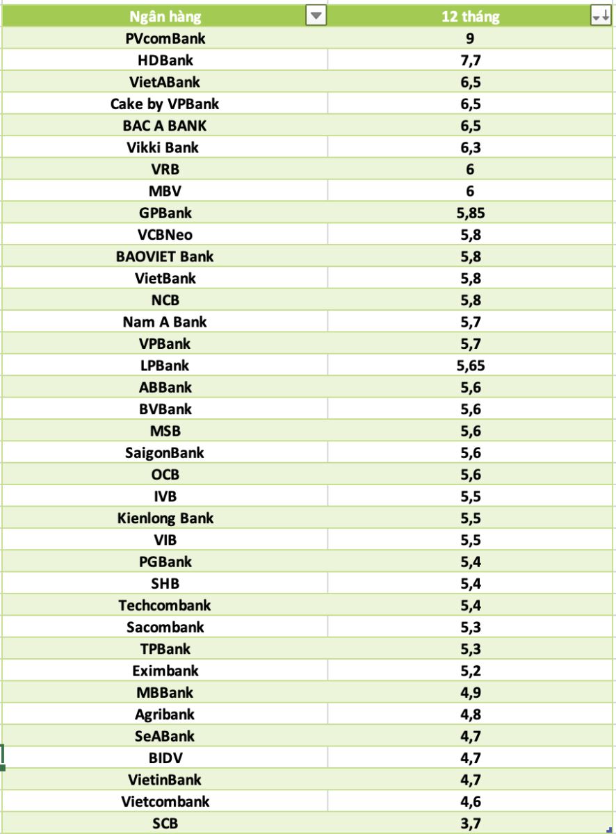Thống kê các ngân hàng có lãi suất tiền gửi tiết kiệm cao nhất hiện nay: